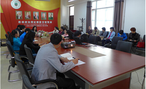 随后,陈彦彦详细解读了《关于印发的通知》,就《专题辅导》作为必修课程开设七个专题,16学时,1学分的全省工作部署向与参会教师做了重点布置,并结合部门实际提出工作思路:一是全体教师要做到"吃透讲话精神,学透核心要义,讲透精髓道理",树立"精学传道,修己授业"的责任意识,扎扎实实做好课外功夫。二是要全力筹备专题课程开设的教师配备、授课专题的确定、与现有课程的融合衔接工作,并要与相关部门做好协调,为专题课程及时、优质开出做出积极的努力。三是着手实施"理论学习与集体备课结合、实践学习与支部活动结合" 的"双结合"举措 5月20日,思政部开展"四进"、增强"四信"学习布置会在主楼737举行,思政部主任陈彦彦主持,全体思政课教师参加。