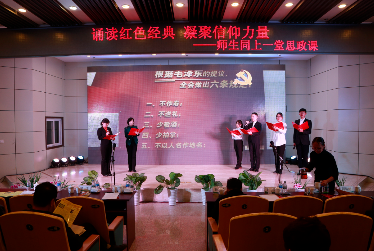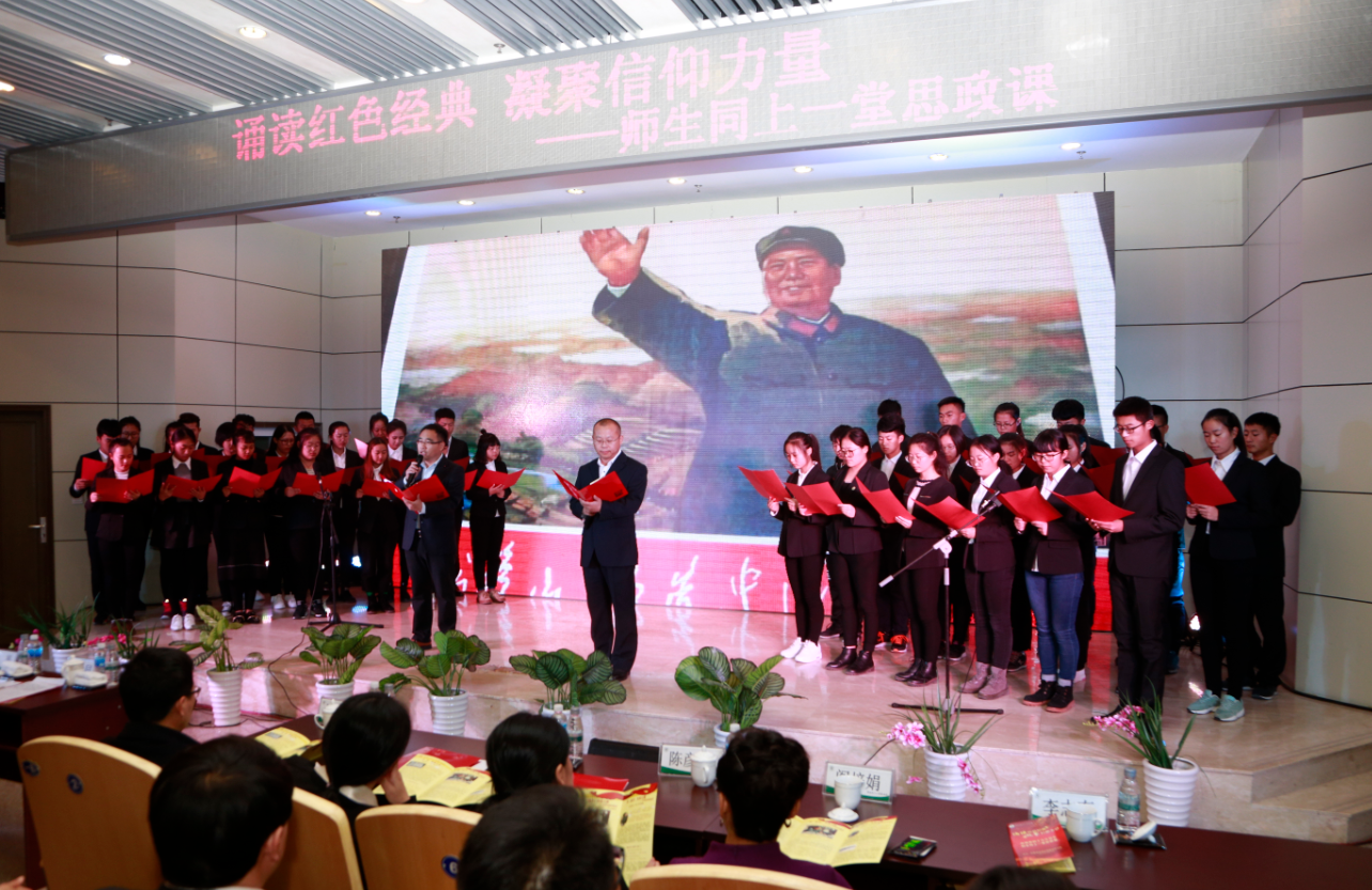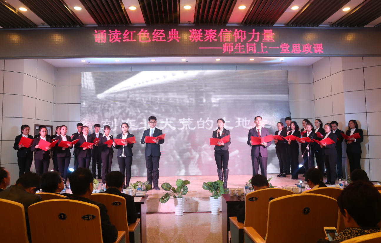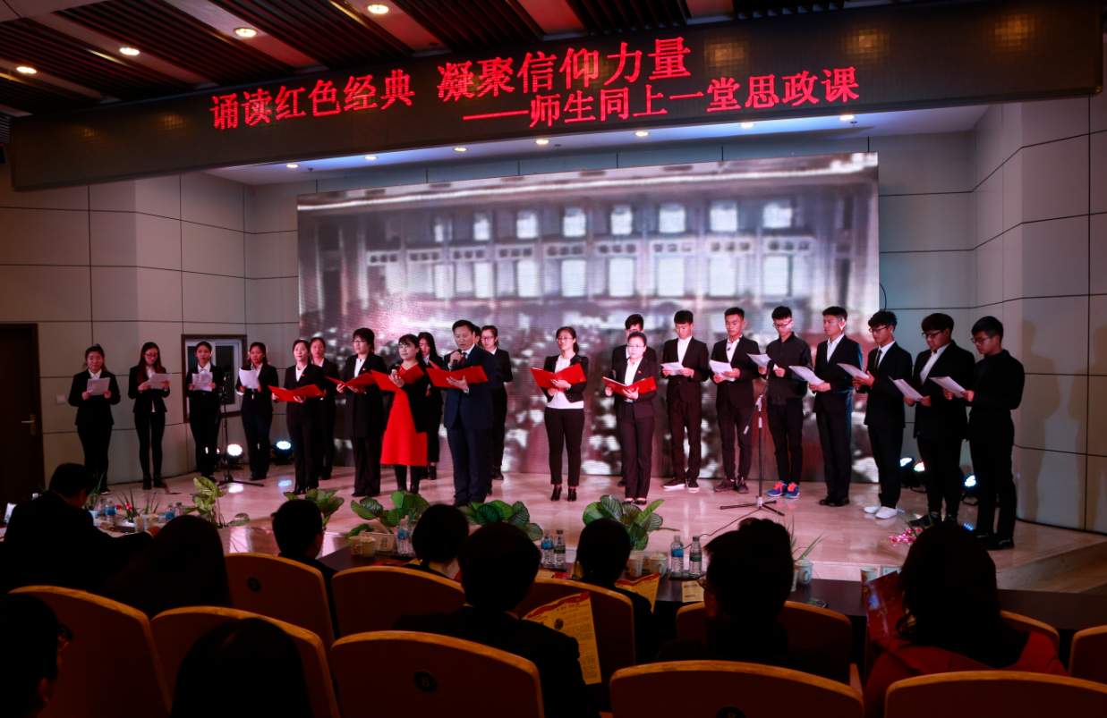 五门课程的20余名思政课教师带领6个小组百余名员工诵读了11篇红色经典,诵读内容从《共产党宣言》到《习近平励志中国青年》,作品时间跨越百年,通过“求索、发展、复兴”的篇章线索有序连接。从作品选择、形式设计、视频制作到登台诵读,师生全程携手同行,在传承不可磨灭的红色印迹中凝聚信仰的力量。员工参与的热情、收获的感言证明,红色经典深受老员工喜爱。思政课育人应该不断创新和尝试这种教学形式、转换育人舞台,在诵读经典中引领老员工进一步坚定理想信念,养成良好的阅读习惯。
