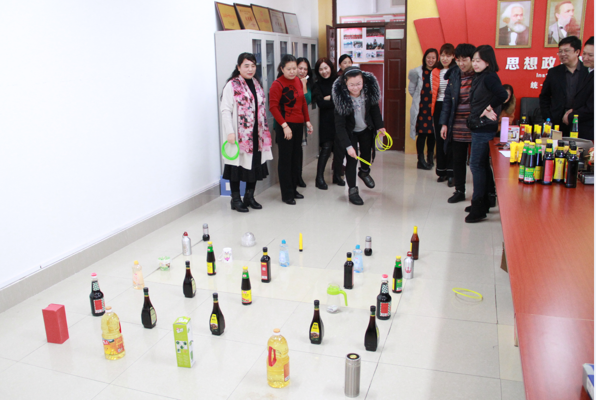 本次联欢活动分为两个环节,首先每位教师按照抽签顺序,选择知识答题,根据答题情况,领取3-5个圈,套取自己心仪的奖品。答题环节,部门工会委员围绕党的十九大精神、党章和思政主干课程基础知识出题50道;套圈环节,奖品主要从实用角度准备了调料等生活用品。通过举办联欢活动,大家一方面磨炼基本功,加深和巩固理论知识;一方面增进友情,感受工会温暖,收获快乐。大家在寓教于乐、欢声笑语中迎接传统女性节日,开启新学期征程。
