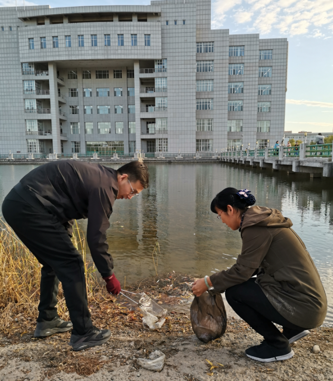 原理党支部组织党员教师清理校内环湖白色垃圾,为营造干净、整洁、舒适的校园环境贡献力量。
