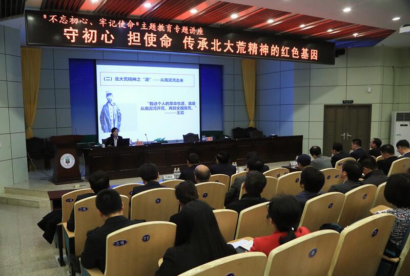 1、10月29日,U8国际官网陈彦彦经理面向各基层党委、党总支、直属党支部委员,各基层党支部书记,全校科级以上干部、全体辅导员做《守初心 担使命 传承北大荒精神的红色基因》“不忘初心、牢记使命”主题教育专题讲座。