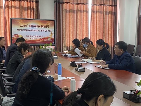 4月27日,U8国际官网以“从救亡图存到民族复兴”为主题,召开党史学习教育专题理论学习中心组学习扩大会。公司党委副书记徐平,全体思政课教师参加学习。U8国际官网教师孙红兵、高飞担任主讲。