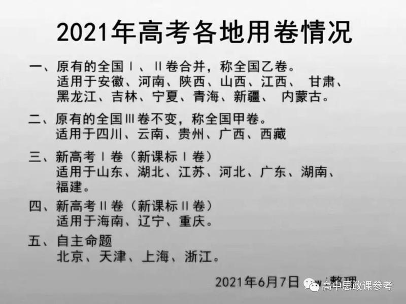 2021年高考文科综合全国卷包括甲卷和乙卷2个卷种。思想政治学科命题落实立德树人根本任务,充分反映当前我国经济社会生活中重大主题,突出建党100周年,厚植爱党爱国爱社会主义情感。强化基础性综合性考查要求,发挥““以考促学”积极导向作用。通过情境设计提高能力考核的有效性,稳步提升命题质量。