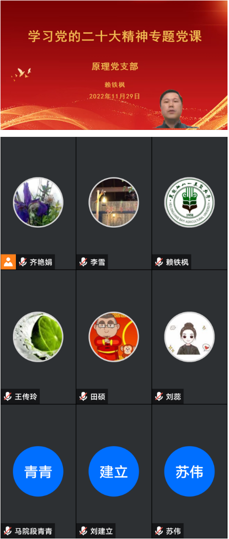 为深入学习宣传贯彻党的二十大精神,做好党的二十大精神进教材、进课堂、进头脑工作,11月29-30日,原理党支部、概论纲要党支部相继开展学习宣传贯彻党的二十大精神专题党课。