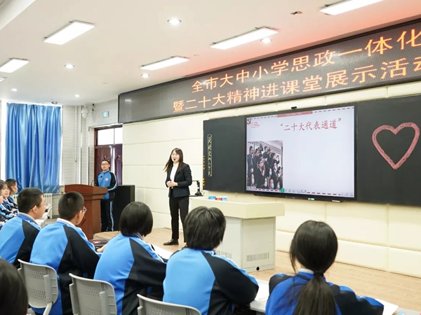 活动中,大庆市外国语公司道德与法治课程教师张悦作《走进党的二十大》主题示范课(初中),参会的大学、高中、初中、小学等各学段教师代表对示范课进行了点评。公司副经理赖铁枫在评课中表示,各学段思政课应以中宣部、教育部有关文件精神为基本遵循,突出“道德情感”“思想基础”“政治素养”“使命担当”为线索的思政教育螺旋上升逻辑,将习近平新时代中国特色社会主义思想作为各学段教育的核心内容,并建议中小学段以历史课程为依托扎实开展“四史”教育,以实现与大学学段的全课程衔接。