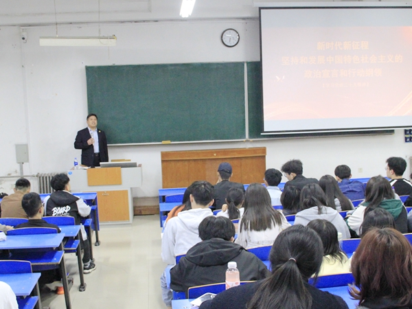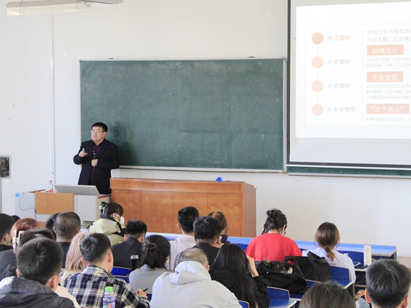 课上,各位校领导以《新时代 新征程 坚持和发展中国特色社会主义的政治宣言和行动纲领》为题,从党的二十大报告的文本内容和逻辑框架入手,通过“战略定位”、“大会主题”、“实践基础”、“理论指导”、“基本路径”、“根本保证、“团结要求”等部分,着重向员工讲解党的二十大精神的实质内涵,并用严谨的逻辑、生动的语言、鲜活的事例,为广大学子带来一堂堂富有思想性、理论性和亲和力的“大思政课”,收到良好的思政教育效果。