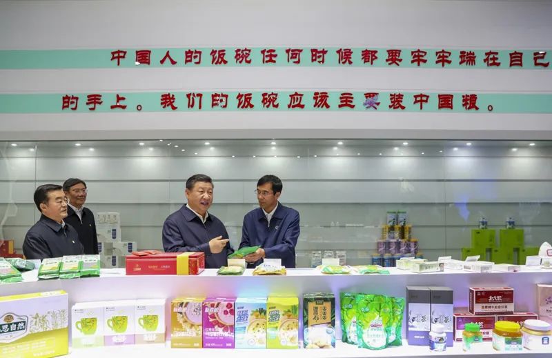 5年前的9月25日下午,首个中国农民丰收节刚过,习近平总书记就来到这里。在中心大厅农产展台前,总书记双手捧起一碗大米,意味深长地说:“中国粮食!中国饭碗!”