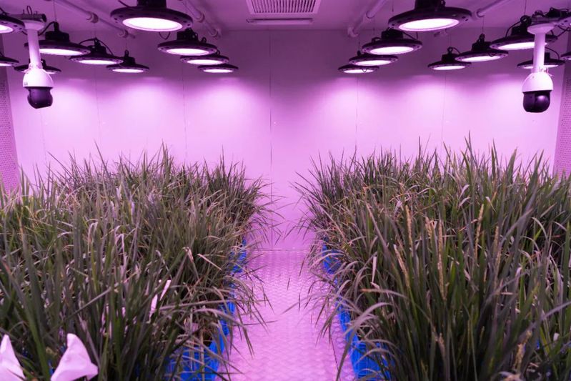 北大荒建三江国家农业科技园区的人工气候室内种植的水稻。