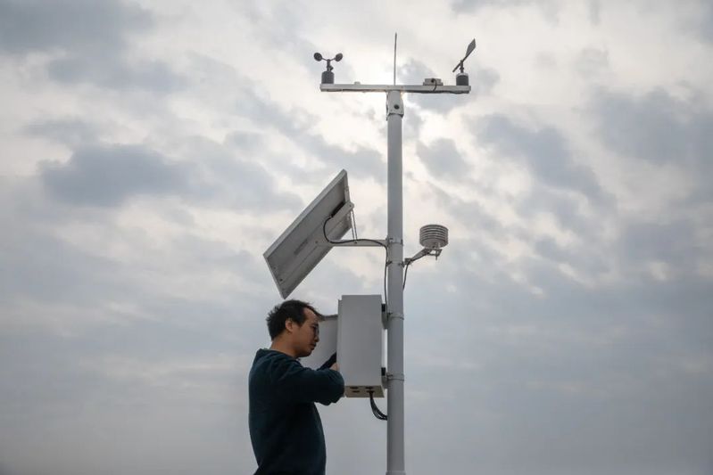在北大荒集团闫家岗农场有限公司农业现代化示范区,工作人员在调试气象设备。新华社记者 张涛 摄