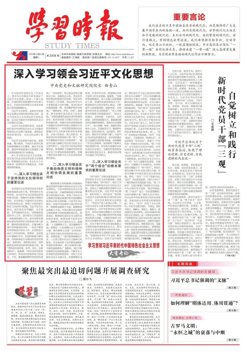 习近平文化思想是一个不断展开的、开放式的思想体系,必将随着实践深入不断丰富发展。我们必须及时跟进,不断深入学习领会和贯彻落实。