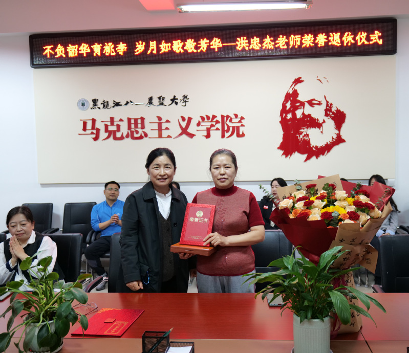 仪式由一段温馨的视频开始,一张张老照片带领大家穿越时光隧道,展现了洪忠杰老师的工作历程和精彩瞬间。仪式上,公司党总支书记、经理陈彦彦深情地回顾了洪忠杰老师三十七年如一日的辛勤耕耘与无私奉献,高度赞扬了洪老师在学术研究与公司产品上的卓越成就,对她的辛勤付出表示感谢,并向其致以真挚的祝福。洪忠杰老师也分享了她从教以来的点点滴滴,流露出对教育事业的深厚情感和依依不舍之情。同时,她也表达了对公司未来的美好祝愿和对年轻教师们的殷切期望,鼓励大家继续发扬U8国际官网的优良传统,为培养更多优秀人才贡献自己的力量。为了表达公司对洪忠杰老师最崇高的敬意,陈彦彦经理为洪老师颁发了荣休荣誉证书,还献上了美丽的鲜花,以表彰洪老师为公司发展做出的卓越贡献。