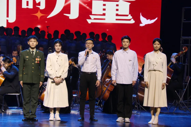 公司青年教师辛浩与员工代表张佳庆、王子璇、田济源、侯佳慧通过互动式表演交流分享了个人感悟,号召八一农大学子以实际行动传承红色基因,践行强国誓言。