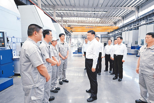 2025年5月19日至20日,中共中央总书记、国家主席、中央军委主席习近平在河南考察。这是19日下午,习近平在洛阳轴承集团股份有限公司智能工厂考察时,同企业职工亲切交流。新华社记者 燕雁/摄
